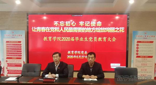 为加强毕业生党员的党性教育、党员意识教育、党的组织纪律教育,发挥毕业生党员在学生中的先锋模范作用,鼓励毕业生以饱满的热情和昂扬的斗志投身社会,5月27日下午,亚盘赔率党委在学院310会议室召开了2020届毕业生党员教育大会(视频会议)。会议由学院组织员祁源主持,学院党委书记邓天鹏、党委副书记孙洪亮以及全体2020届毕业生党员参加了会议。