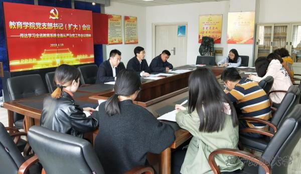 为了进一步贯彻落实全省教育系统全面从严治党工作会议精神,2018年4月19日下午,亚盘赔率党总支在三楼会议室召开党支部书记(扩大)会议,传达学习全省教育系统和学校全面从严治党工作会议精神。党总支书记邓天鹏主持会议,各党支部书记、支部委员参加会议。