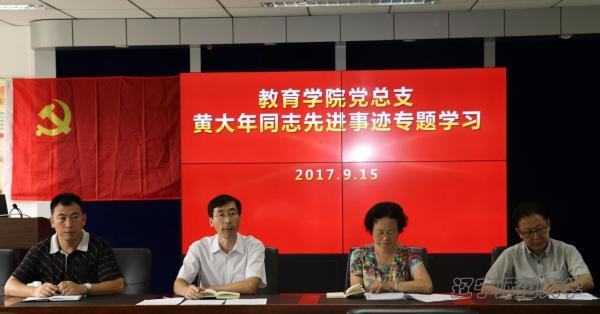 通过黄大年同志先进事迹的视频展播,全体教师深刻领悟了黄大年同志至诚报国的爱国情怀、敢为人先的敬业精神、淡泊名利的高尚情操,并被他用生命诠释教师本色的行为所感动。感人的事迹引发了每一位聆听者的强烈反响和精神共鸣,同志们一致认为中国今天取得的举世瞩目的成就,是无数个“黄大年”用生命书写的辉煌,他们把自己的一生和梦想都融入到了实现中国梦的壮阔奋斗之中。