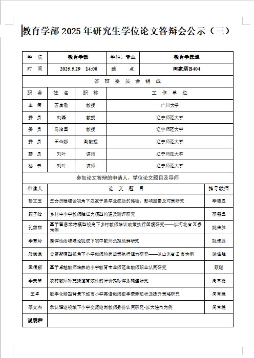 亚盘赔率 2025年研究生学位论文答辩会公示(三)